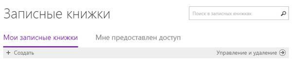 Также на этой странице можно выполнить поиск по названиям записных книжек, создать новую записную книжку и по ссылке «Управление и удаление» перейти в OneDrive.