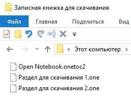 Распакуйте архив folder.zip. В нём будут папки с названиями, соответствующими названиям записных книжек. Внутри папки записной книжки файл «Open Notebook.onetoc2» и файлы с расширением «.one» и названиями, соответствующими названиям разделов. При открытии файлов с расширением «.one» страницы добавляются в раздел OneNote по умолчанию.
