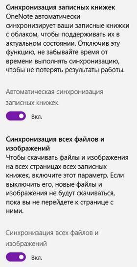 4. В пунктах «Автоматическая синхронизация записных книжек» и «Синхронизация всех файлов и изображений» установите переключатель на «Вкл.».