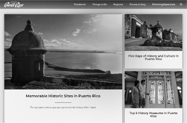 Рис. 1. Скриншот современного маркетинг-сайта Пуэрто-Рико www.discoverpuertorico.com [дата обращения: 14.01.2021]. Сайт отлично позиционирует привязку к территории и к национальной идентичности, но уже не так отчетливо ориентируется конкретно на американский рынок