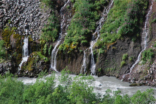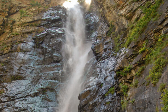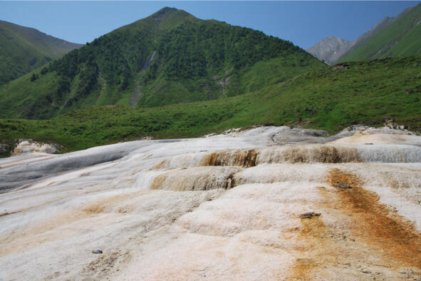 Вторая часть программы водопадыГвелети (Gveleti). Их два: большой и малый. Но если видел первый, ко второму смысла уже идти нет, хотя тот и ближе. Тропа петляет по склону ущелья среди пышной растительности. Маршрут несложный, но нужно быть внимательным, смотреть под ноги, чтобы не оступиться, подвернуть себе ногу или навернуться на скользких от брызг камнях. Признаться, такое удовольствие не по мне, несмотря на то что вид низвергающейся массы воды всегда завораживает. Алекси также не любитель таких похождений. Ждет нас в теньке на пригорке. Предлагает отведать домашней чачи, как говорится, в знак дружбы и начала совместных приключений. И они действительно начинаются, причем в тот же день, во всяком случае для меня, потому как огненный напиток, хорошо утолив поначалу жажду, очень быстро достигает своей цели, отягощенной по приезду в отель остатками виски из Duty Free. Но перед тем, как гаснет сознание, мы все же успеваем переселиться в другой, пусть и небольшой, но более удобный номер с балконом и видом на Казбек, посетить ресторан в центре Степанцминды и вернуться в отель глубокой ночью, ориентируясь по звездам на темных без единого фонаря улицах.