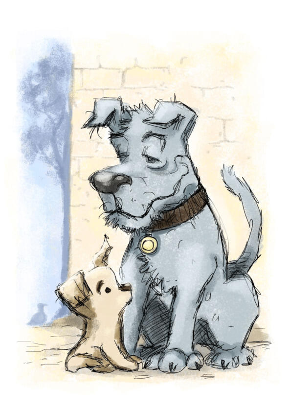 Большая собака, присев на задние лапы, деликатно оттолкнула щенка и важно сказала:
