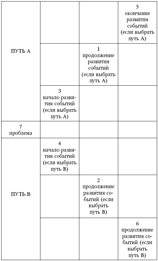 Верхний ряд карт 315 указывает на последовательность событий, которые могут произойти при совершении задуманного деяния.