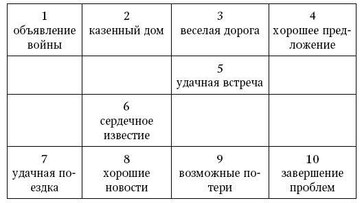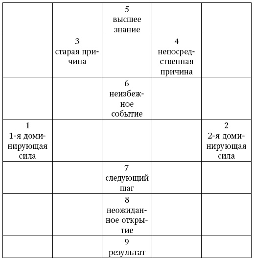 Нижний ряд карт 426 указывает на последовательность событий, которые могут произойти при несовершении задуманного деяния.