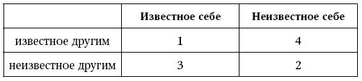 На пересечении столбцов и строк можно увидеть все осознаваемые и неосознаваемые вещи как со стороны собственного восприятия, так и со стороны окружающих.