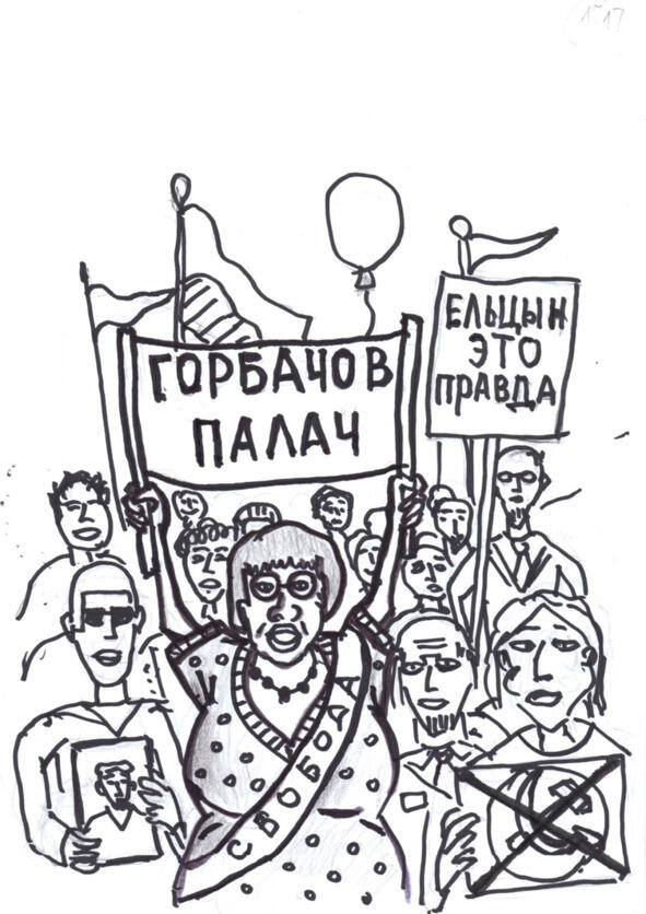 ДЕМОКРАТИЧЕСКИЙ МИТИНГ (фломастер). В таёжную глушь проникли слухи о заварушке в стране.