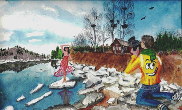 РЕКА ОЯТЬ. ВЕСНА (акварель) Власти не добирались до поселения К, а туристы добирались обязательно. И даже весной. А вёсны здесь были такими живописными, хоть Саврасова воскрешай.