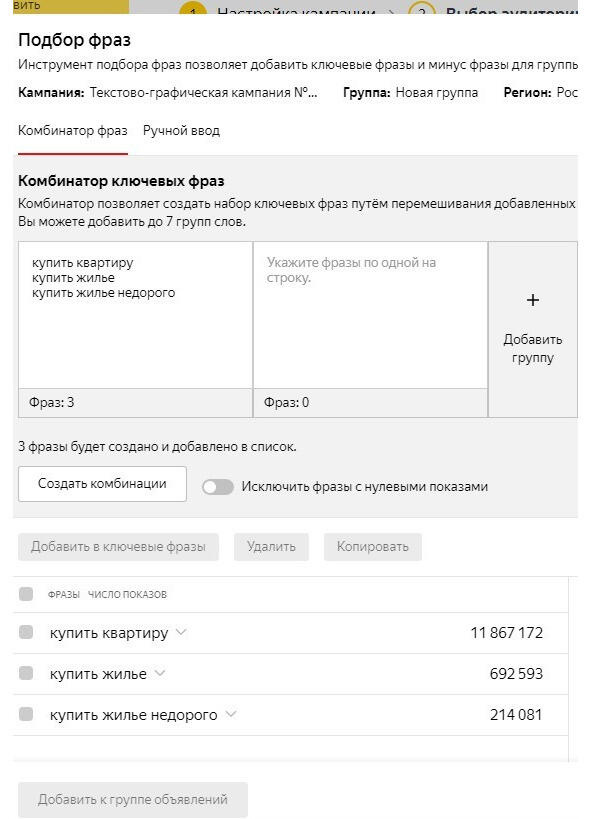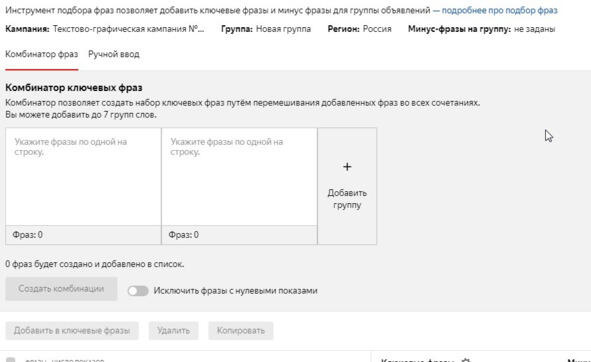 3. Переходим к ключевым фразам: