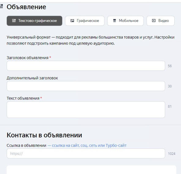 Вот так выглядит это окно. Начинаем создавать объявление.