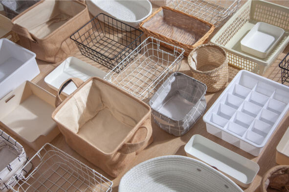 Проанализируй каждую полку на предмет: какие органайзеры или корзины необходимо купить; какого размера и дизайна; для каких вещей.