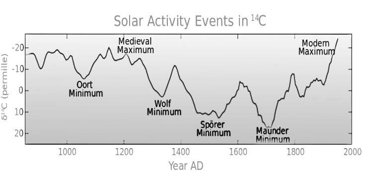 Рис. Фото с сайта:https://ru.wikipedia.org/wiki/Солнечная_цикличность#/media/Файл:Carbon14_with_activity_labels.svg