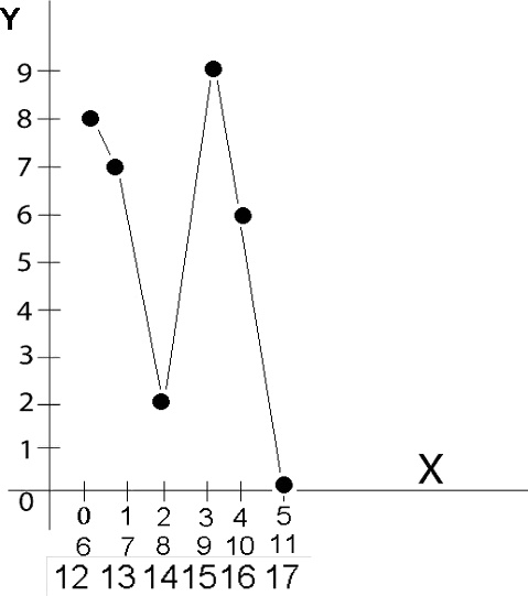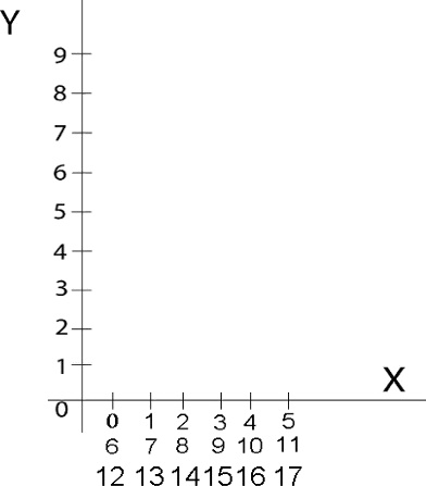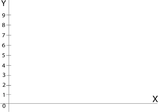 Шаг 2. По оси Y (вертикальная линия) проставляем цифры от 0 до 9