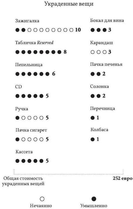 (3) Когда я познакомился со своей женой, Е., у нас появился своего рода ритуал воровать в ресторанах или барах, куда мы захаживали, вещи, почти ничего не стоившие, за кражу которых не предусмотрены были какие-либо серьезные последствия (таблички с надписью Reserved, стоявшие на столиках пепельницы, перечницы, солонки, меню). Это было для нас вроде игры, чтобы добавить жизни яркости.