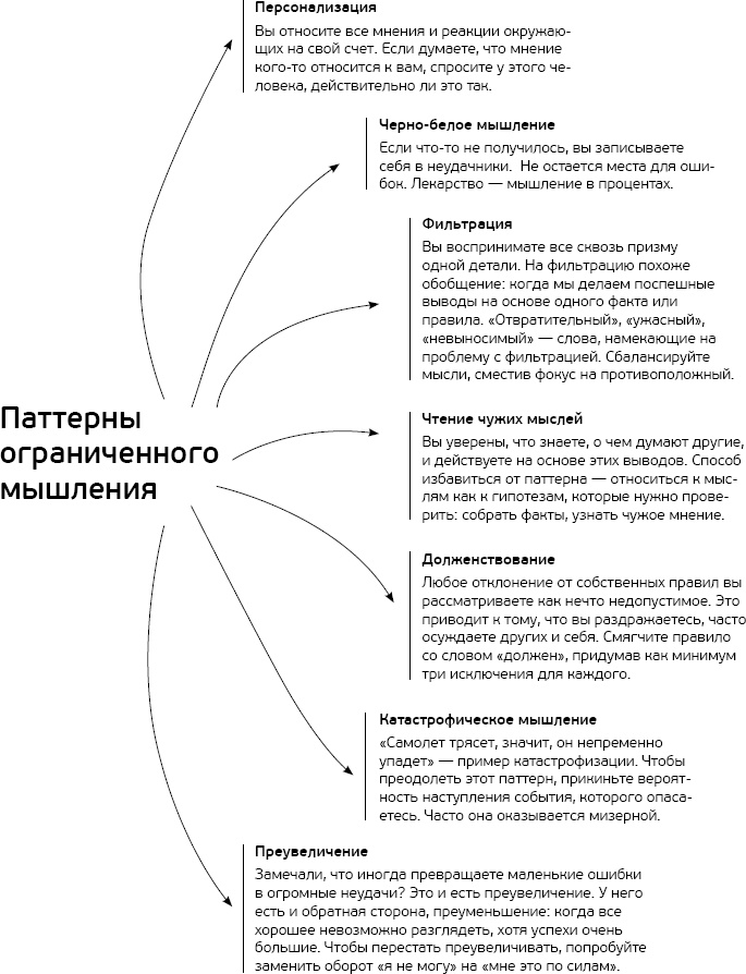 При этом у вас любящие друзья, а в группе, скорее всего, тоже будут неуверенные новички. Такая реакция иррациональна, она строится на черно-белом мышлении и преувеличении. Это и есть паттерны ограниченного мышления. Всего их семь. Научиться их замечать и фиксировать большой шаг в сторону эффективного мышления.