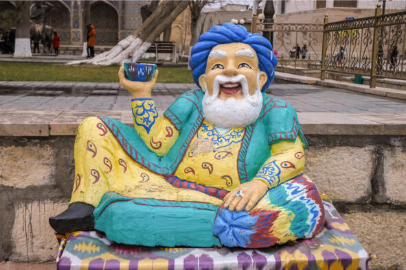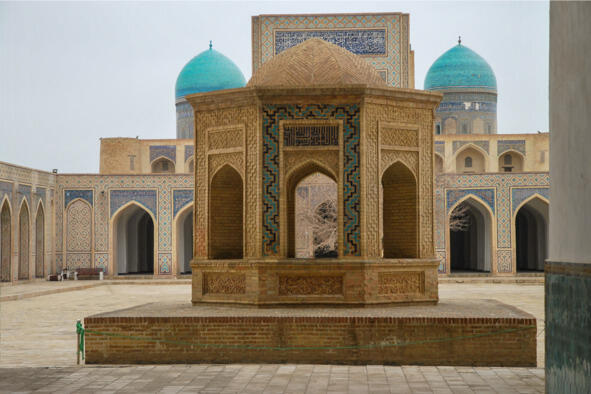 В Бухару прилетели в воскресенье, 30 декабря, в 4:40 утра. На улице темень, плюсовая температура, для зимней одежды даже жарковато немного. Здание аэровокзала маленькое, самолет подкатывает прямо к нему, спускаешься с трапа и сразу идешь на паспортный контроль, затем в зал ожидания, где нас встречает помощник Али. В отель Malika Bukhara едем пустынными улицами, но центр, несмотря на столь раннее время, уже перекрыт. Останавливаемся возле одного из кордонов, наш водитель выходит из машины, подходит к гаишнику и, пожав ему руку, начинает о чем-то дружески разговаривать. Затем также неспешно возвращается. Интересуюсь, знает ли он полицейского? Нет, отвечает, первый раз вижу, но почему с хорошим человеком не поговорить, пожимает он удивленно плечами. На площади, рядом с гостиницей, картина повторяется. Очередной незнакомец, крепкое рукопожатие и душевная беседа. Все не торопясь, с чувством собственного достоинства. Такие сценки мы наблюдали каждый день в разных уголках Узбекистана. Душевность и открытость в общении друг с другом и нами, приезжими, вот отличительная черта местных жителей, о которых и пойдет наш рассказ, потому как описывать сами города особого смысла не имеет.