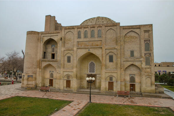 Если только небольшими штрихами, начав, пожалуй, с нашего отеля, старинного особняка, примыкающего стенами к караван-сараю Ахмаджон XVIII века, а окнами выходящего в переулок, ведущий к медресе Абдурахмони Алам (Abdurakhmoni Alam) XIX века, где некогда обучались дети знатных бухарских чиновников, и ансамблю Ходжа-Гаукушан (Khoja-Gaukushan), памятнику ЮНЕСКО XVI века. За ним располагается частный сектор, который лишь усиливает восприятие и погружение в неповторимую ауру Средней Азии.