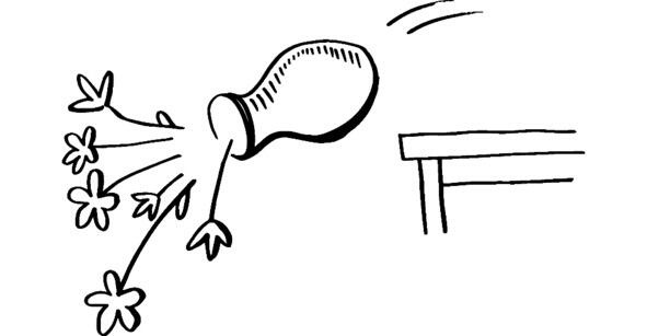 Но за окном опять поют птицы. Вкусные птицы Василий пулей вылетает из-под одеяла и несётся на кухню. С тумбочки падает ваза с цветами. Ди-дзинь! Красивая была ваза. Мамина любимая. На полу лужа, в луже цветы. Их папа сегодня утром подарил маме.