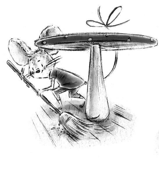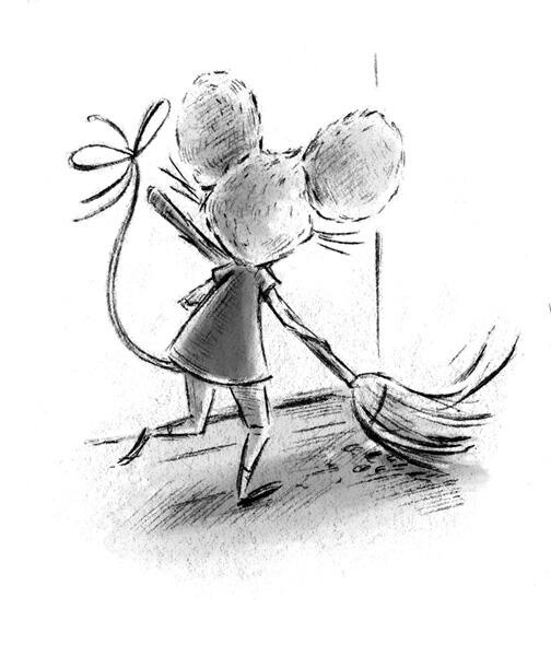 Мышка прошлась метлой по всем углам в кухне и вымела пыль и обрывки листьев за порог.