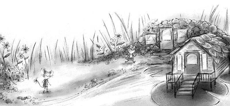 Сейчас, только скажу маме! крикнула она, упрыгав в сторону дома. Софи пошла за ней, чтобы подождать подругу у крыльца. Лягушачий домик стоял на самом берегу ручья, неподалёку от того места, где жила мышиная семья. Одной половиной домик опирался на плавучий лист кувшинки, а другой на усыпанный галькой бережок. Софи знала, что это её отец, местный архитектор, помогал семье лягушек подготовить проект такого чудесного дома.