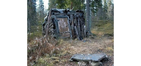 Разыскиваем завал, по скользким бревнам с трудом и риском перебираемся через реки Аверину и Илюшиху. На противоположном берегу находим свежие следы человека: порубку и тропу. Зимовья нет. Потом находим и зимовье. Его подмыло и оно провалилось в землю, одна крыша торчит над землей, да и та заросла мохом.