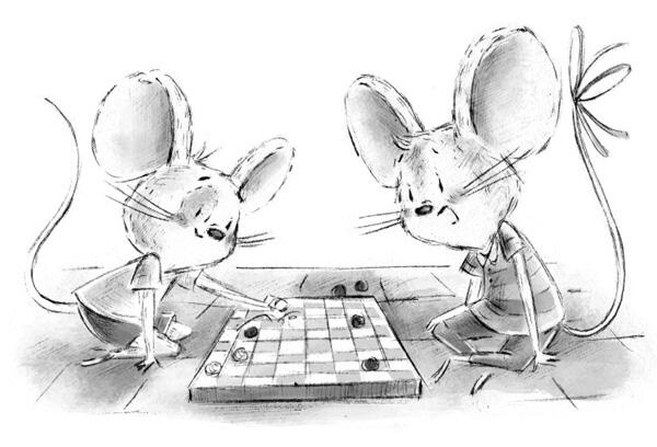 Уинстон пошевелил усиками, обдумывая следующий ход. А потом протянул лапку и ловко съел сразу две шашки Софи!