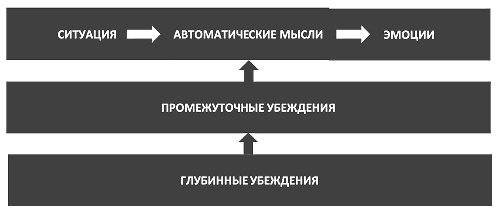 Поэтому автоматические мысли следствие промежуточных и глубинных убеждений.