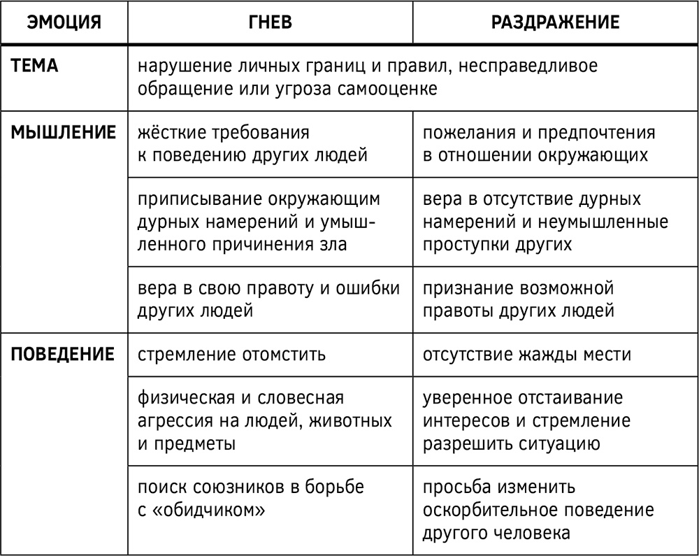 Таблица 4. Сравнительная характеристика гнева и раздражения