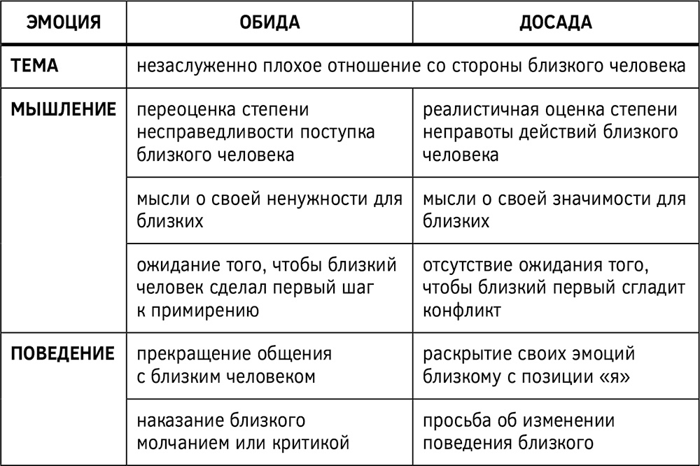 Таблица 5. Сравнительная характеристика обиды и досады