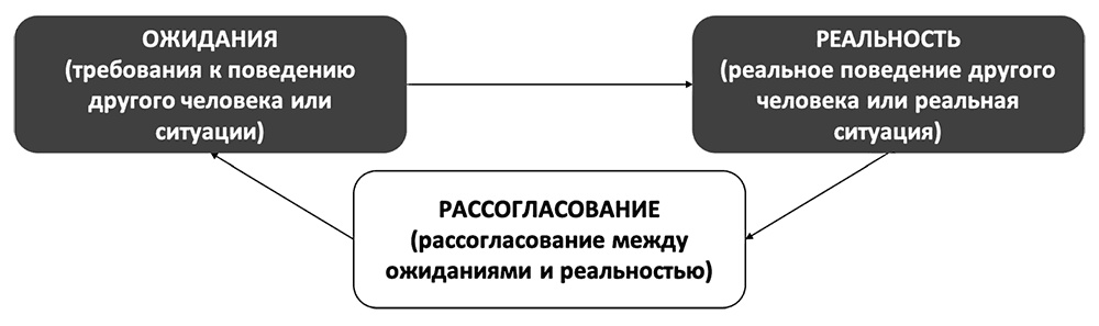 Гнев образуется из-за несоответствия поведения другого человека или какой-либо ситуации вашим ожиданиям, говоря иначе, является следствием потребностей, которые расходятся с действительным положением дел («коллега должен был оценить мой труд», «пробок и дождя сегодня не должно быть» и т. д., см. рис. 13).