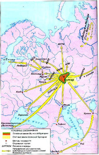 Болгары это жители не современной Болгарии, а обширного и ныне исчезнувшего государства, Волжской Булгарии, которое располагалось на Волге со столицей в районе впадения в неё Камы (сейчас это Татарстан).