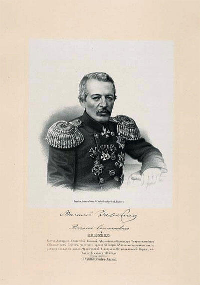 К 1854 году крепость имеет уже статус города, официально называется Петропавловским портом и является центром Камчатской области[273]. Здесь в ста шестнадцати деревянных домах проживает 1.531 человек[274], но особым благоустройством да красотой городок не блещет, а некоторые посетители и вовсе называют его «дрянным»[275]. Но это, как говорится, дело вкуса, а вот то, что защищён он из рук вон плохо, делает задачу его обороны весьма проблематичной. Посудите сами. На начало 1854 года в Петропавловске в распоряжении первого военного губернатора Камчатской области и капитана порта генерал-майора Василия Степановича Заво́йко[276] находятся лишь 283 солдата[277] и ни одного (!) офицера[278]. Город защищают семь лёгких орудий, в том числе одно полевое, которое перевозится лошадьми[279].