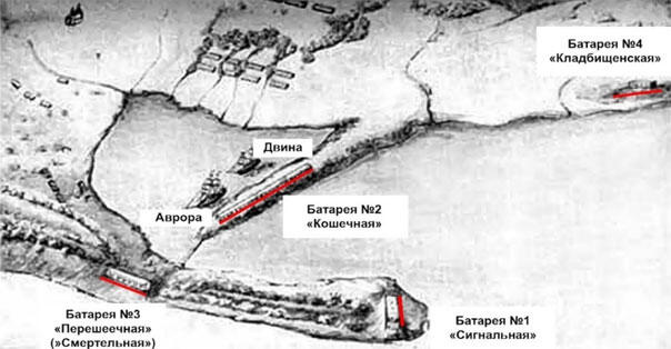 Схема некоторых артиллерийских батарей Петропавловска в 1854 году