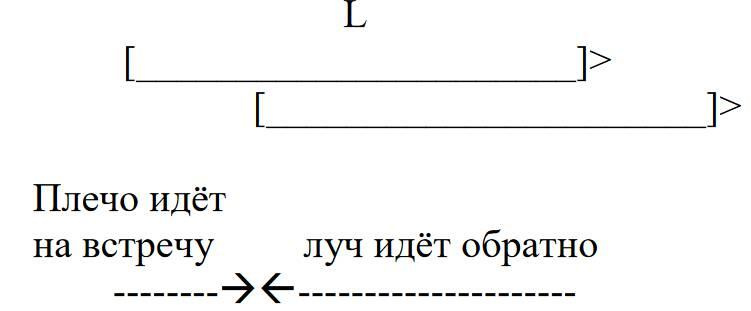 Итак, мы получили сумму, противоположно направленных отрезков лучей, продольного плеча. Снова заметим, что отрезок луча "назад" вносит ошибку измерения, занижает результат.