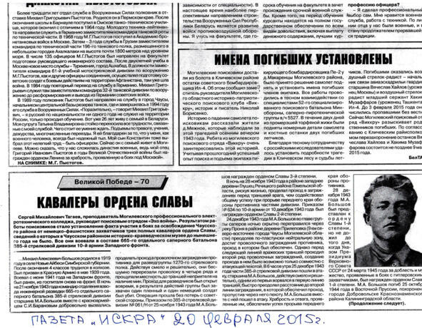 Газета «Искра» г. Чаусы о поисковом отряде. Источник: http://mpek.by/gazeta-iskra-g-chausyi-o-poiskovom-otryade/