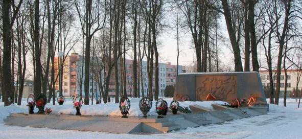 Братская могила в центральном городском парке. Источник: https://chausy.by/foto/foto-vidy/foto-chausy-zima-2004