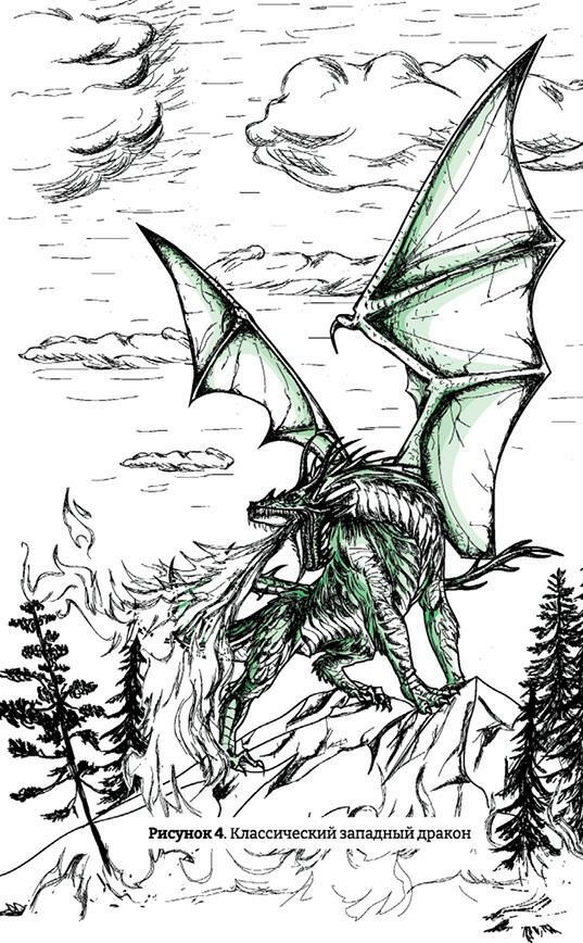 Западные драконы праздник для глаз. Как и у восточных собратьев, их цвет соответствует условиям окружающей среды и диете. Они особенно искусны в отборе минералов из пищи и усвоении этих минералов своей чешуей. Они могут получать литий (красный цвет) из рыбы, железо (золотой, зеленый и оранжевый) из мяса, калий (сиреневый) и кальций (зеленый) из овощей и так далее. Попробуйте комбинировать эти цвета по желанию и получите в итоге целый спектр возможностей. Хотя у многих драконов есть металлические блики на гребне или хвосте, но золотой, серебряный или даже бронзовый дракон относится исключительно к области фантастики.