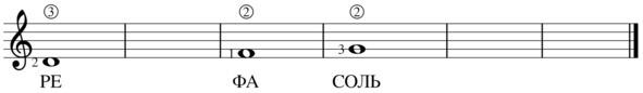 Нота РЕ зажимается 2-ым пальцем на II ладу 3-й струны.