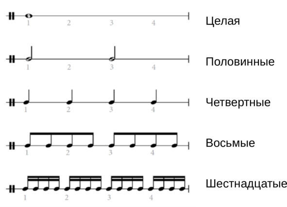 Размер такта записывается в виде дроби: верхняя цифра указывает на количество долей, а нижняя на длительность каждой доли.