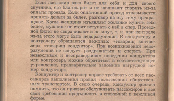 В этой же книге (стр. 104) написано о том, что, например, кондуктор должен свои требования предъявлять в спокойной и вежливой форме: