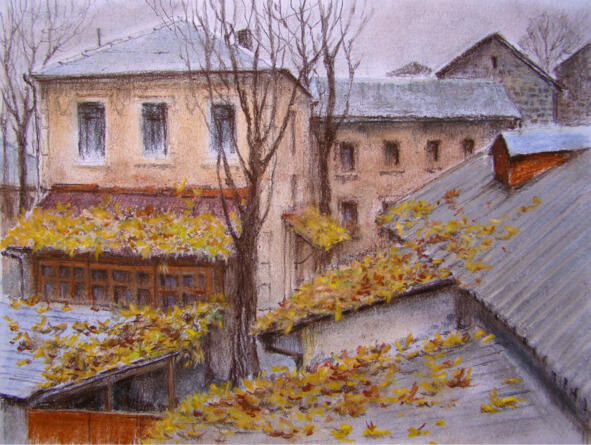 Осенняя птица сновала по мокрым дворам:
