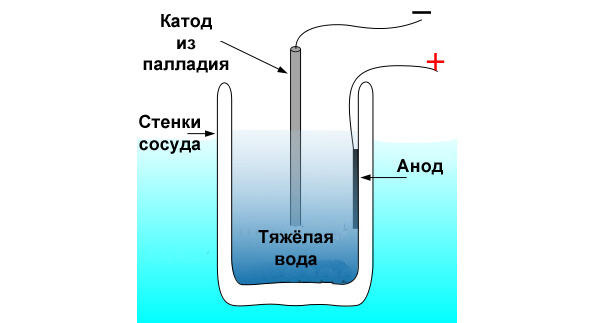 Опыт Флейшмана и Понса. Катод, адсорбируя ядра водорода из тяжелой воды выделяет аномально много энергии