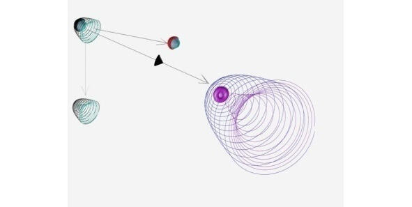 Взаимная непрерывная и периодическая индукция-регенерация трёх монополей в замкнутом волноводе электрона носит бесконечный во времени процесс, вызванный сходящимся вращением и увеличивающимся значением вечного магнитного монополя по спирали волновода электропотенциалов форме полусферы, в центре поверхности которой он исчезает, заряжая и переходя в сферу гравитационного монополя. В этой точке, перед тем как произойдёт такой квантовый переход, концентрируются одна в одной две изменяющиеся сферы-зарядов максимальных значений этих монополей. Схему процессов в фазовом замкнутом объёме электрона можно также представить, как периодическая зарядка сферы магнитного монополя разрядкой гравитационного монополя с рождением внутреннего волновода из гравпотенциалов и внешнего волновода электропотенциалов в форме полусферы рождение полуцелого спина.