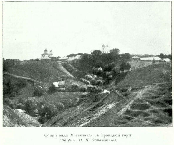 «Мстиславль располагался на 2.230 десятинах земли и включал 37 улиц, пересекающихся преимущественно под прямым углом. Названия улиц были позаимствованы от православных церквей (Афанасьевская, Соборная), и от католических костелов и монастырей (Кармелитская, Бернардинская), а также соседних городов и поселений (Пустынская, Смоленская, Мазоловская, Шамовская). По национальному составу больше всего в городе жило евреев. Вот почему в городе было 9 молитвенных домов и одна каменная синагога. Среди христиан преобладали верующие православного исповедания. Католиков среди городского населения было очень мало из-за шовинистской политики царского правительства в отношении поляков после восстания 1863 года».
