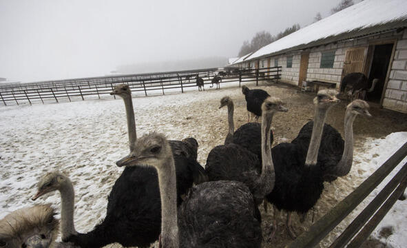 На ферме налажен полный цикл выращивания и разведения черного африканского страуса.