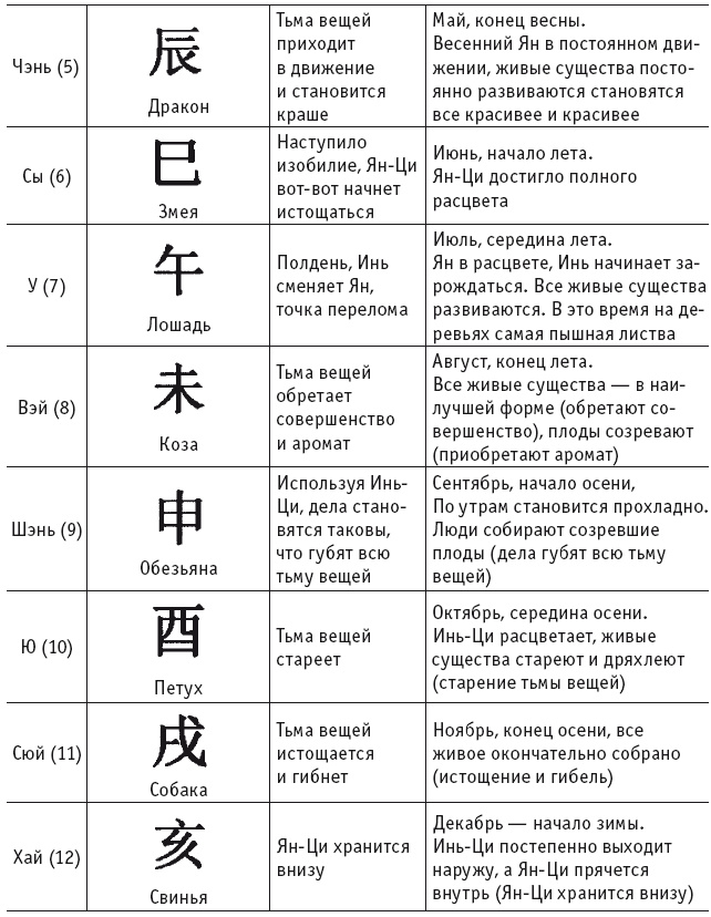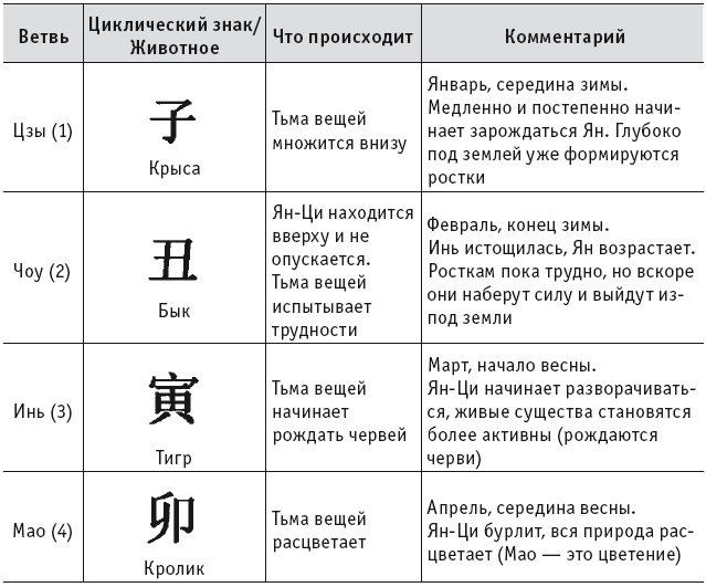 Из этой таблицы явно видно, что Земные ветви (подобно Небесным столбам) расположены в порядке развития явлений и вещей от минимума к максимуму, от рождения к увяданию и снова к развитию.