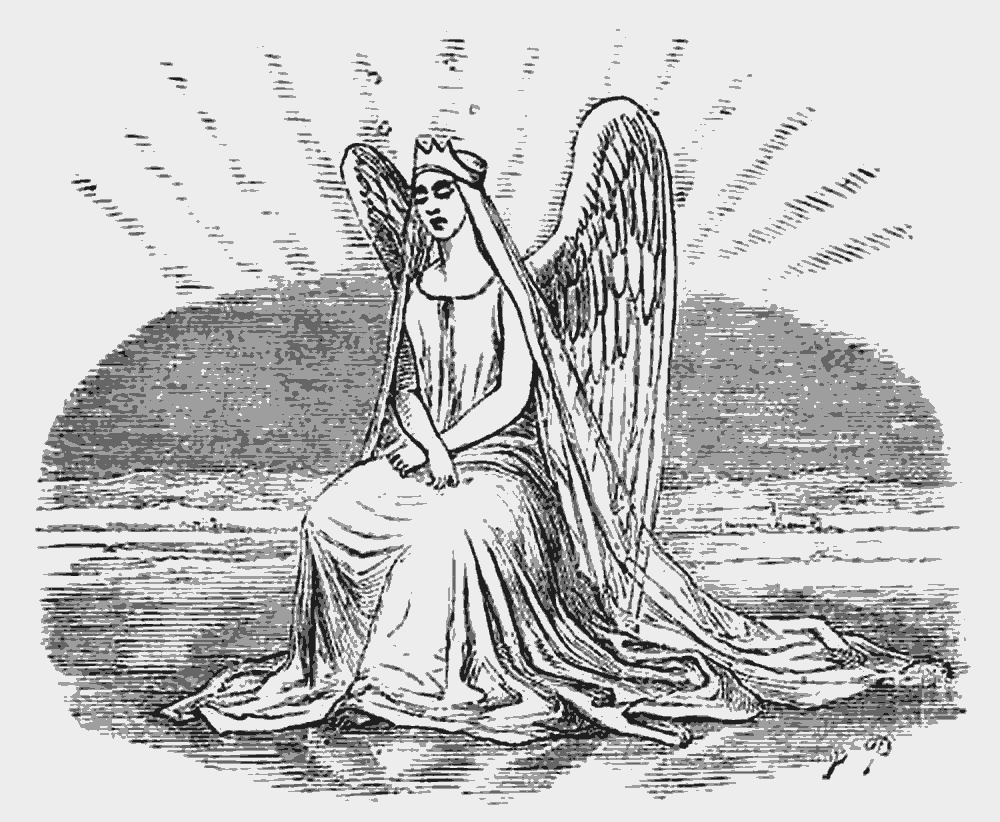 Герда принялась творить «Отче наш»; было так холодно, что дыхание девочки сейчас же превращалось в густой туман. Туман этот всё сгущался и сгущался, но вот из него начали выделяться маленькие, светлые ангелочки, которые, ступив на землю, вырастали в больших грозных ангелов со шлемами на головах и копьями и щитами в руках. Число их всё прибывало, и, когда Герда окончила молитву, вокруг неё образовался уже целый легион. Ангелы приняли снежных страшилищ на копья, и те рассыпались на тысячу кусков. Герда могла теперь смело идти вперёд; ангелы гладили её руки и ноги, и ей не было уже так холодно. Наконец, девочка добралась до чертогов Снежной королевы.