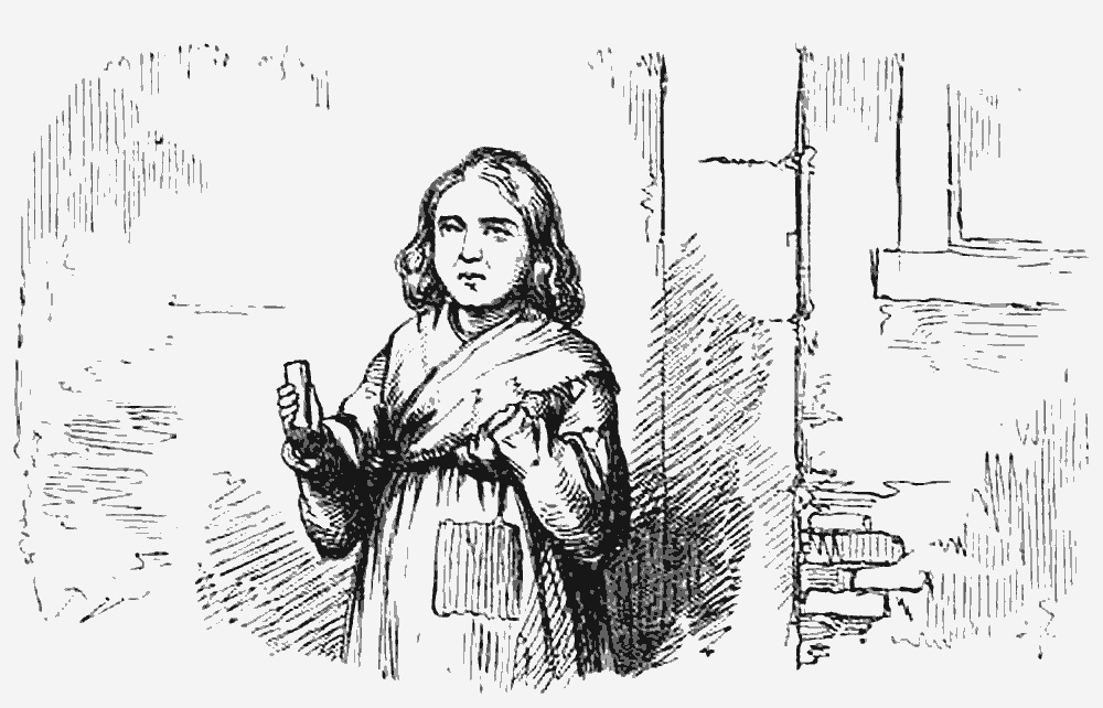 И вот, девочка побрела дальше босая; ножонки её совсем покраснели и посинели от холода. В стареньком передничке у неё лежало несколько пачек серных спичек; одну пачку она держала в руке. За целый день никто не купил у неё ни спички; она не выручила ни гроша. Голодная, иззябшая, шла она всё дальше, дальше Жалко было и взглянуть на бедняжку! Снежные хлопья падали на её прекрасные, вьющиеся, белокурые волосы, но она и не думала об этой красоте. Во всех окнах светились огоньки, по улицам пахло жареными гусями; сегодня, ведь, был канун Нового года вот об этом она думала.