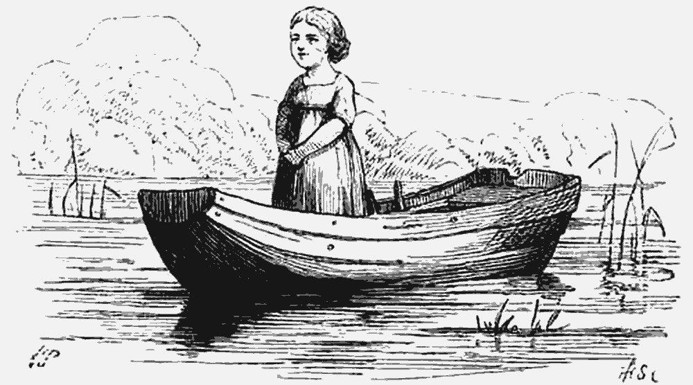 И девочке почудилось, что волны как-то странно кивают ей; тогда она сняла свои красные башмачки, первую свою драгоценность, и бросила их в реку. Но они упали как раз у берега, и волны сейчас же вынесли их на сушу, река как будто не хотела брать у девочки лучшую её драгоценность, так как не могла вернуть ей Кая. Девочка же подумала, что бросила башмачки не довольно далеко, влезла в лодку, качавшуюся в тростнике, стала на самый краешек кормы и опять бросила башмаки в воду. Лодка не была привязана и оттолкнулась от берега. Девочка хотела поскорее выпрыгнуть на сушу, но пока пробиралась с кормы на нос, лодка уже отошла от берега на целый аршин и быстро понеслась по течению.