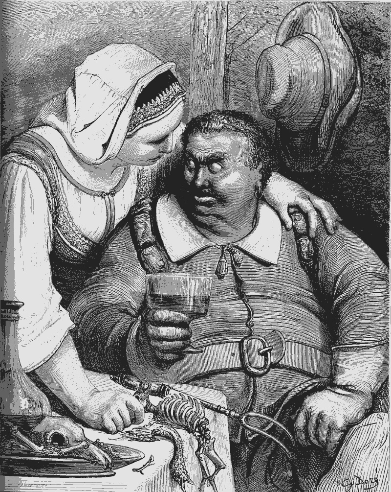 Дровосек наконец рассердился, ибо она раз двадцать повторила, что будет он раскаиваться, и что она его предупреждала. Он погрозил, что поколотит её, если она не перестанет.