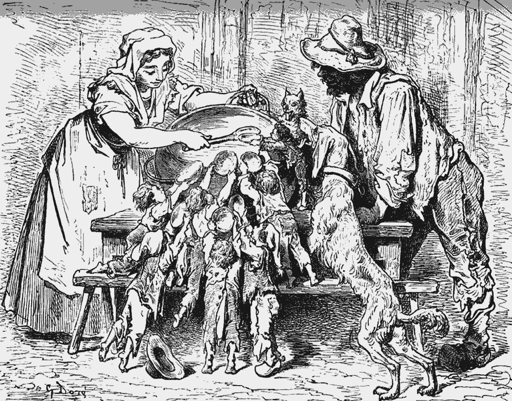 Ах, сударыня, отвечал Мальчик-с-Пальчик, дрожа всем телом братья его тоже дрожали, как же нам быть? Ведь если вы нас прогоните, нас всё равно заедят в лесу волки! Так пусть уж скушает нас ваш супруг. Да он, может быть, и смилуется над нами, если вы его хорошенько попросите.